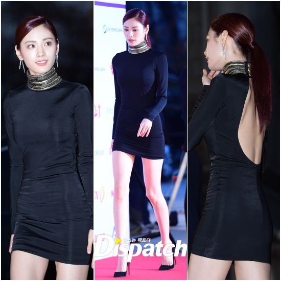나나는 이날 남다른 섹시미를 과시했다. 아찔한 길이의 초미니 드레스에 등까지 훤히 드러내 취재진의 이목을 사로잡았다.