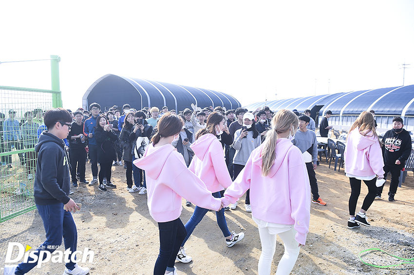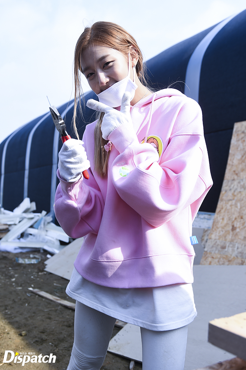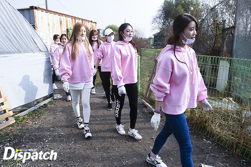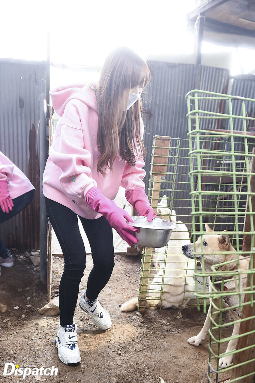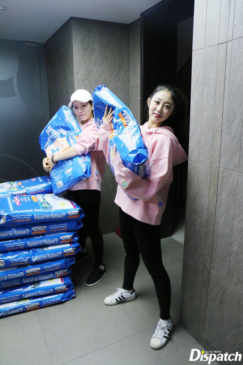 도착하자마자 러블리즈는 '열일' 모드입니다. 우선 준비해온 사료를 직접 실어 나릅니다. 소매를 걷어 붙이고, 열심히 일을 했습니다.