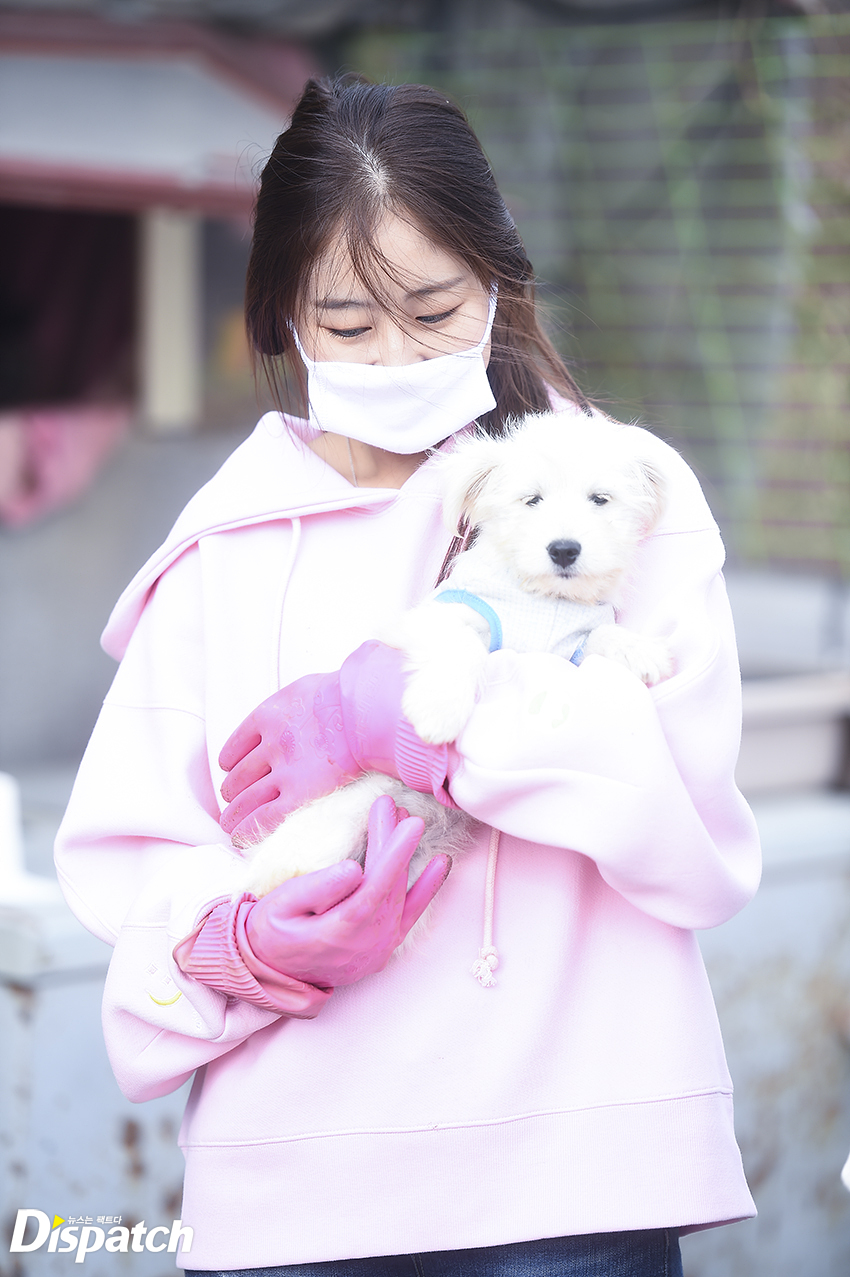 이제 러블리즈가 할 일은 3가지인데요. 견사의 사료와 물을 갈아주고요. 배설물을 치워야 합니다. 애정에 굶주린 강아지들을 보듬어 주는 것도 필요했죠.