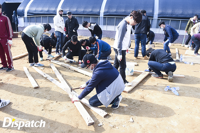 '아재리너스'들도 신이 났습니다. 멤버들에게 직접 군대식 삽질을 가르쳐 주고요. 폐목재에 박힌 못을 뽑는 방법도 꼼꼼히 알려줬습니다.
