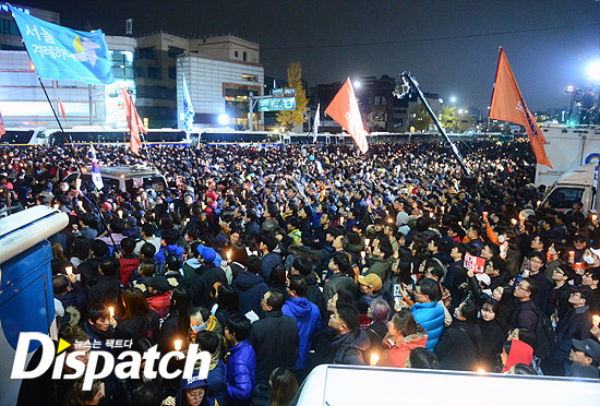[Dispatch=이호준기자] 배우 유아인이 광화문을 찾았다. 성난 시민들과 함께 조용히 촛불을 밝혔다.
