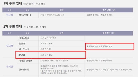 참고로 '2016 멜론 뮤직 어워드' 공식 홈페이지에 따르면, 점수 합산 방식은 다음과 같습니다.