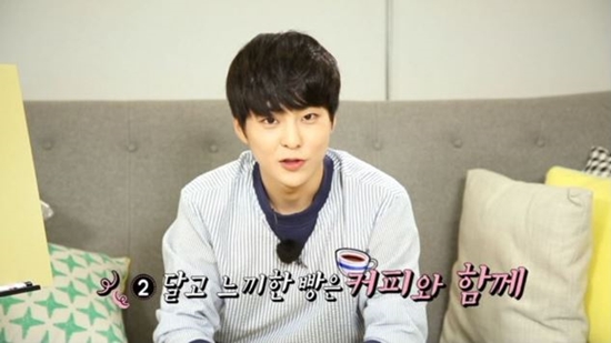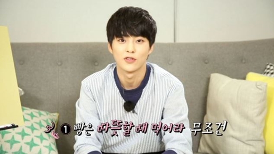 ▷먼저 시우민의 빵 사랑부터 확인해봅시다. 지난 2014년 방송된 엠넷 '뜨거운 순간 엑소'에서도 시우민은 모카빵을 먹고 있었는데요.