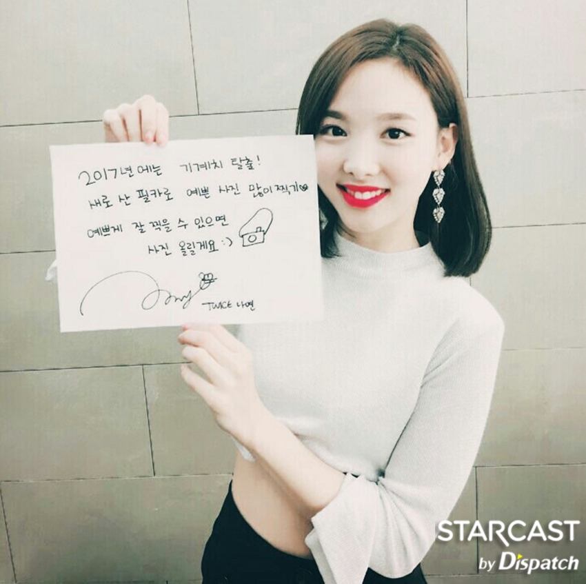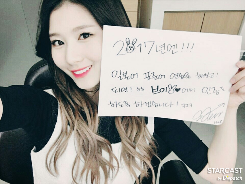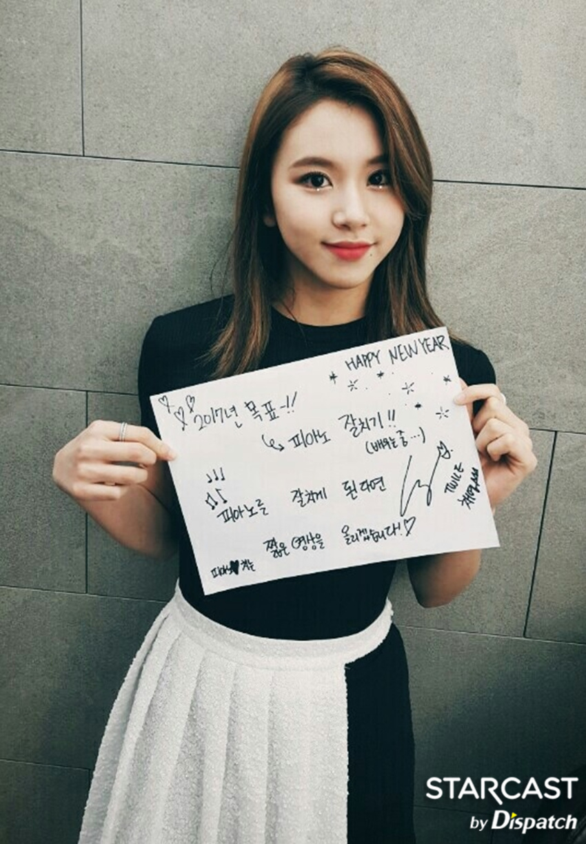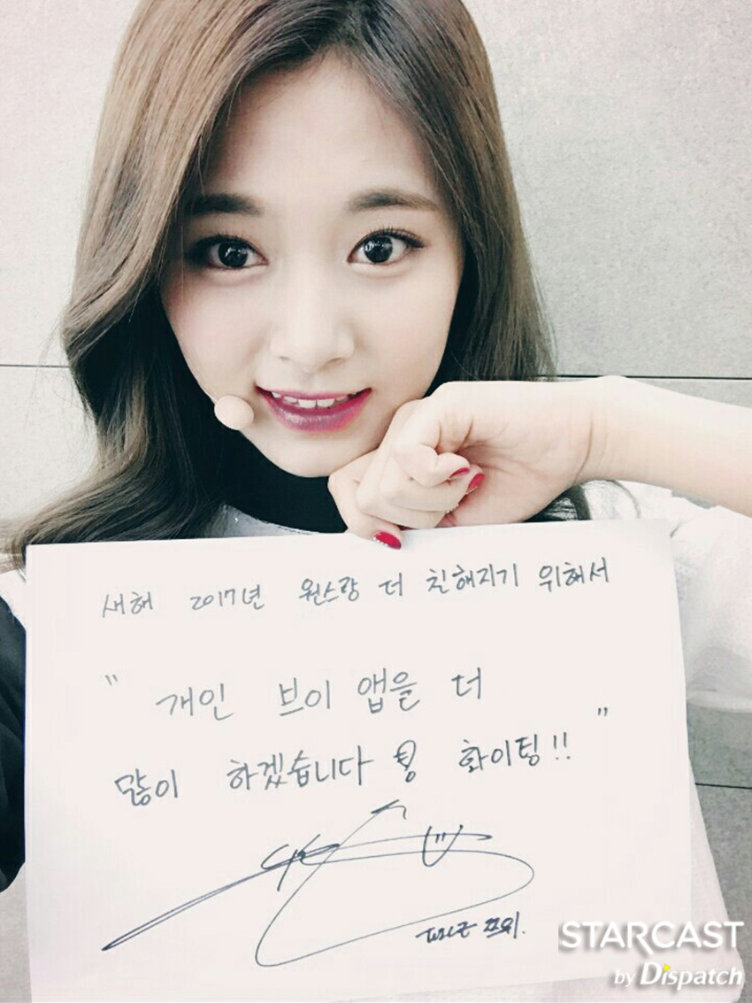 "2017년에는 일본어 표준어 연습을 해보 싶어요. 잘 되면 브이에서 인증할게요~." (사나)
