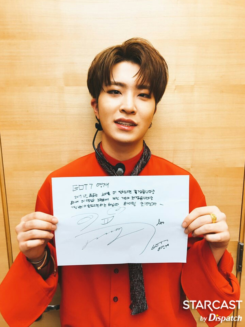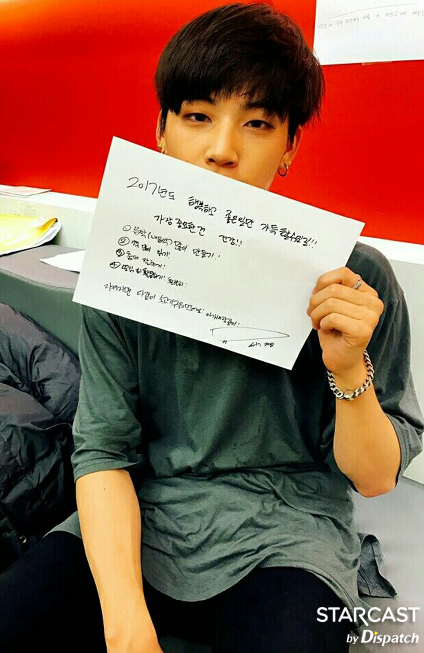 "2017년에는 노래를 더 잘했으면 좋겠습니다! 더 열심히 노력해 멋진 가수가 되겠습니다. 화이팅 최영재!" (영재)