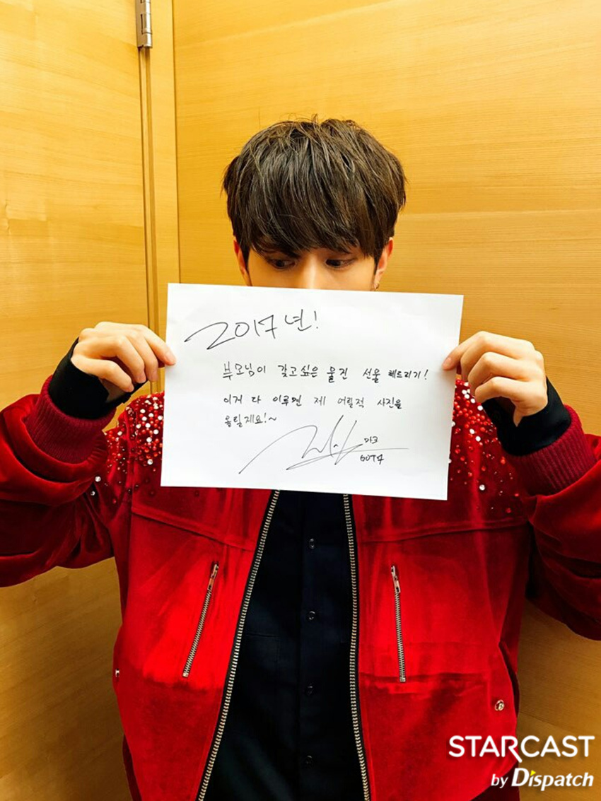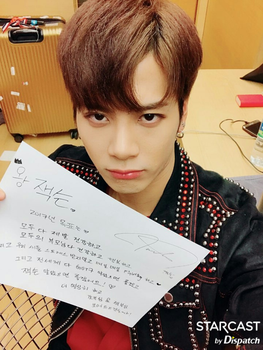 "올해는 모두 건강했으면 좋겠습니다. 우리 아가새들 스트레스 받지말고, 매일 파이팅하고! 그리고 전세계가 다 갓세븐을 알았으면 좋겠습니다. 더 열심히 해 갓부심, 잭부심 보여드릴게요." (잭슨)