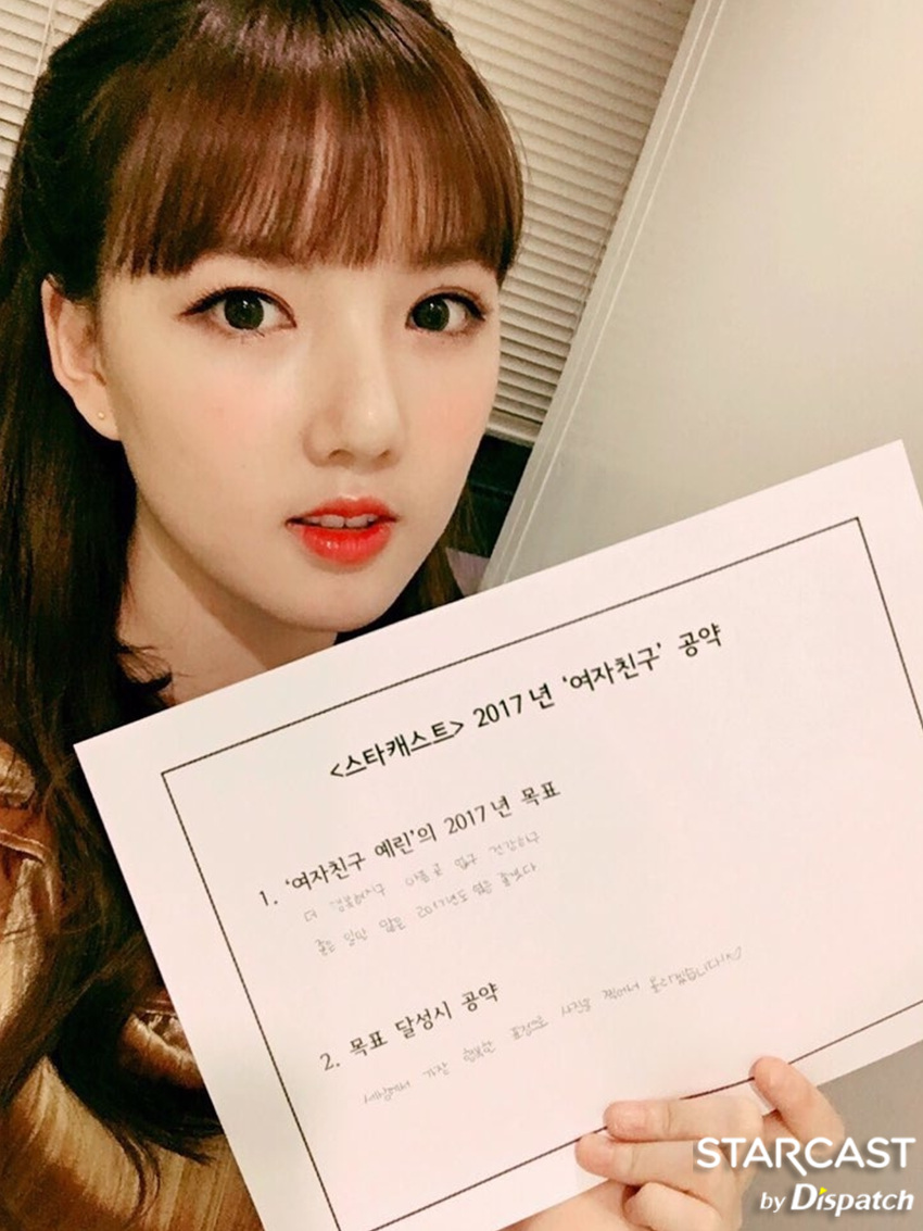 "좋은 일이 많은 2017년도였으면 좋겠어요. 만약 이룬다면 세상에서 가장 행복한 표정으로 사진을 찍어 올리겠습니다!" (예린)