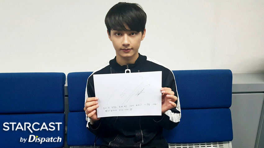 "준이는 음반 차트 1위를 하고싶습니다. 1위를 하면, 멤버들에게 커피를 사줄게요." (준)