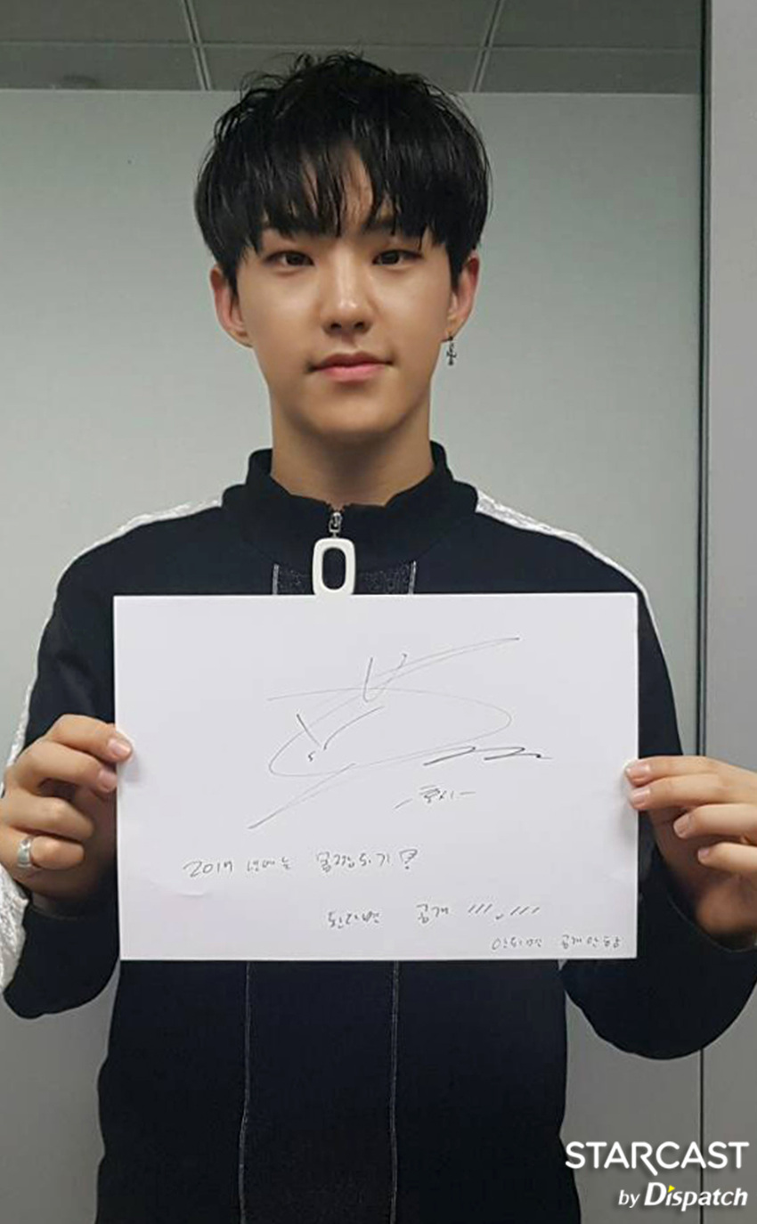 "올 한해 더 즐겁게 활동하고 싶습니다. 성공한다면, 독특한 단체 셀카 공개!" (유주)