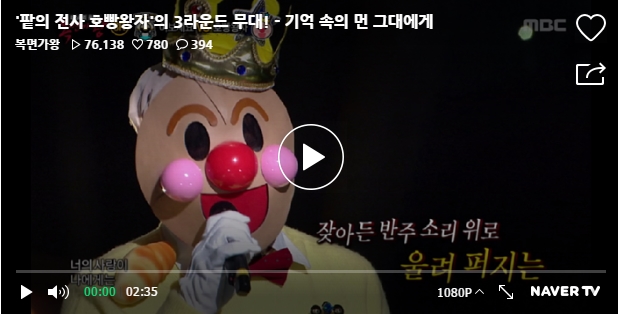 [이꼭봐-TV] MBC-TV '복면가왕'에 새로운 음색킹이 등장했습니다. '팥의 전사 호빵왕자'는 지난 15일 방송된 MBC-TV '복면가왕'에서 가왕에 등극했는데요.