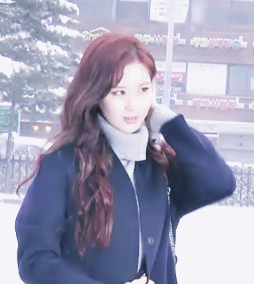 궂은 날씨, 취재진 앞에 선 서현은 여느 때처럼 포즈를 취하려 했습니다. 그런데 갑자기 눈보라가 확 하고 몰아친 건데요.