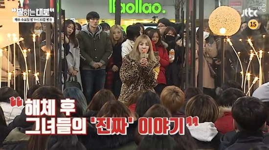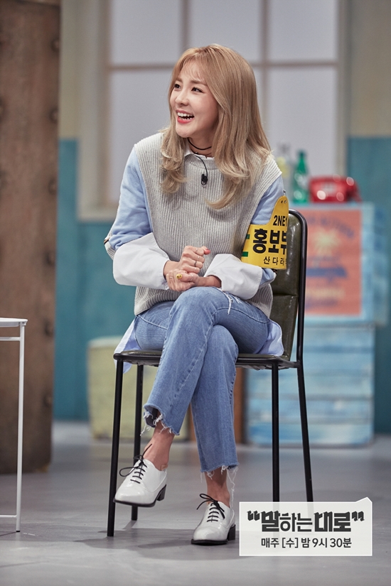 산다라박은 최근 진행된 '말하는대로' 녹화에 참석했습니다. 이날 홍대의 한 길거리에서 토크 버스킹을 했습니다.