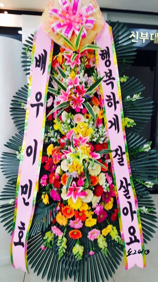 화환에는 "배우 이민호. 행복하게 잘 살아요"라는 문구가 적혀있었습니다. 이민호의 팬사랑이 느껴졌죠. 신부는 기절할 뻔 했다는 후문입니다.