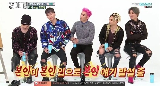 빅뱅은 8일 방송된 MBC에브리원 '주간아이돌'에서 스페셜 영상으로 등장했습니다. 멤버들의 비하인드 토크가 공개됐는데요.