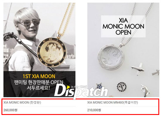 김준수는 먼저 '시아 모닉문'을 출시했다. 지난 3일 팬미팅을 기념해 제작한 것. 가격은 26만 원이다. 제주 토스카나 호텔 팬미팅 때 팔고 남은 것으로 알려진다.