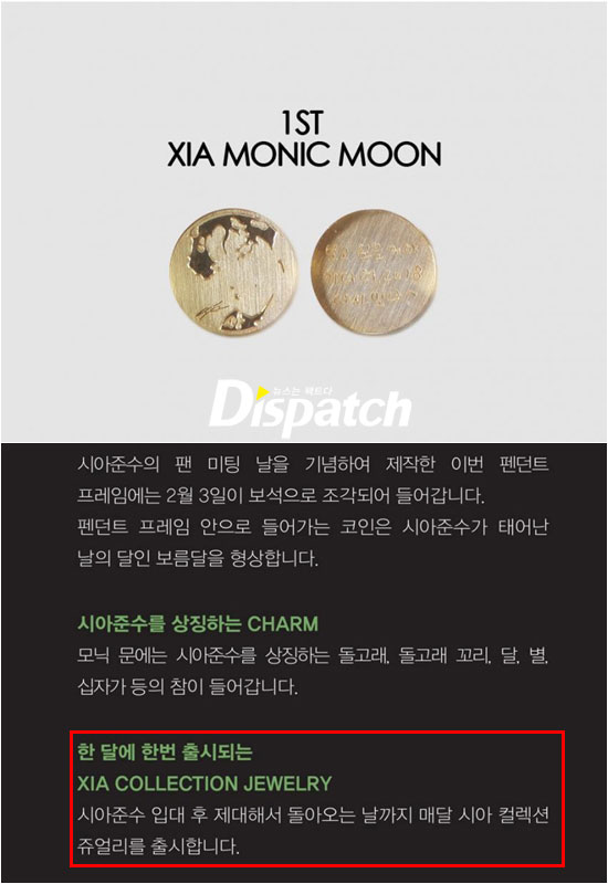 해당 주얼리 업체 관계자는 13일 '디스패치'와의 통하에서 "팬미팅을 잊지 말자는 의미로 준비했다"면서 "앞으로 다른 기념일을 골라 상품을 출시할 계획"이라고 설명했다.