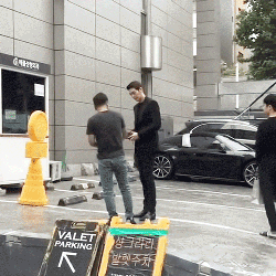 움짤 속 김우빈은 발렛파킹원에게 차키를 받는 모습인데요. 차키를 받으며 연신 고개를 숙이며 감사함을 표합니다.