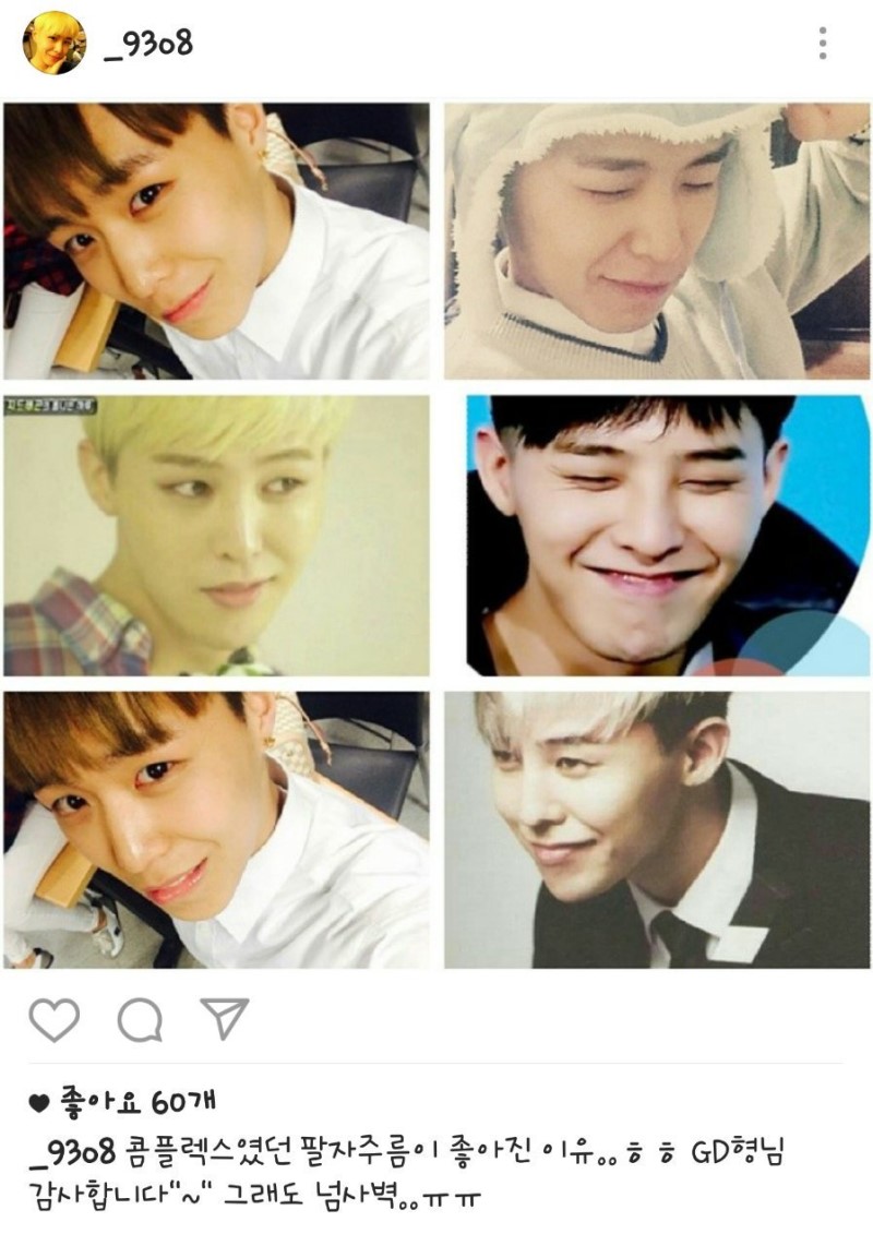 조규민의 SNS에서도 지드래곤 따라하기는 끝이 나지 않습니다. 그는 지드래곤과 자신의 사진을 반반씩 섞어 올리며 "콤플렉스였던 팔자주름이 좋아졌다. GD형님 감사하다"라고 적었습니다.