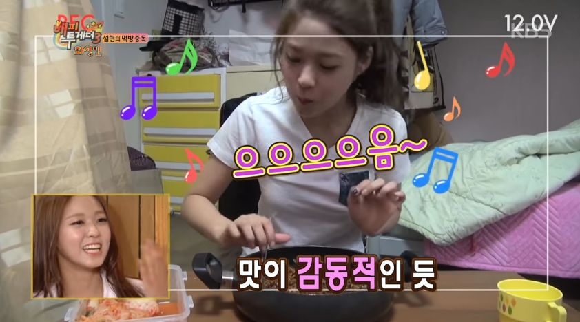 이후 스튜디오와 숙소에서도 먹방은 계속됐습니다. 비빔밥을 숟가락 가득 담아 한 입에 먹었는데요. 귀여운 식탐으로 시청자들의 웃음을 자아냈습니다.