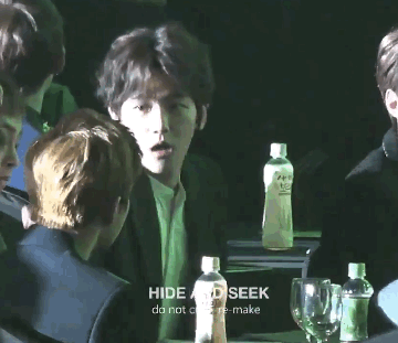 수호는 멤버들에게 화장실 갔다오라고 전달했습니다. 환한 표정으로 양 손을 펼쳤는데요. 화기애애한 분위기가 인상적입니다.