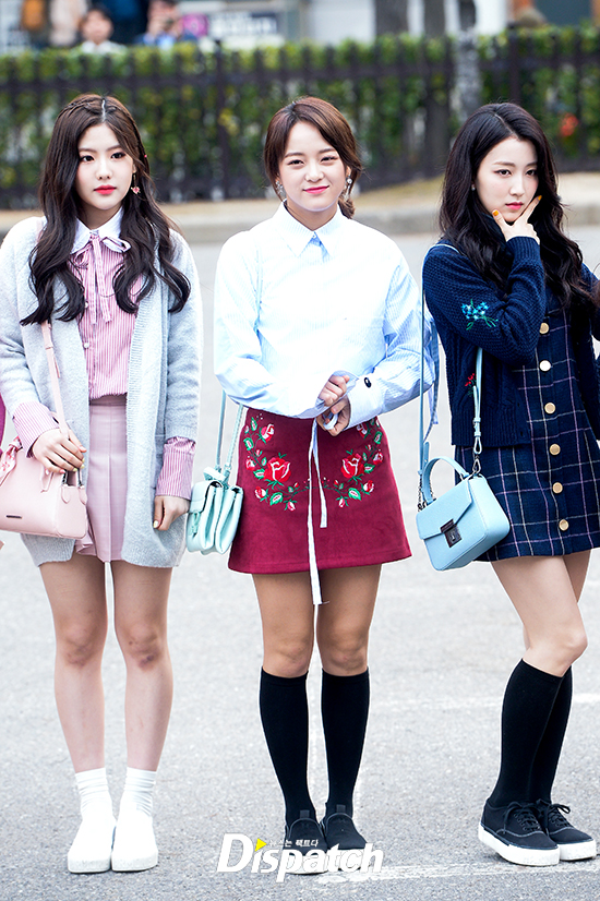 전 '아이오아이' 멤버들은 이날 각선미를 자랑했다. '프리스틴' 임나영과 주결경은 맨투맨과 핫팬츠로 발랄한 모습을 연출했다. '구구단' 김세정과 강미나는 레드 계열의 스커트로 여성미를 강조했다.