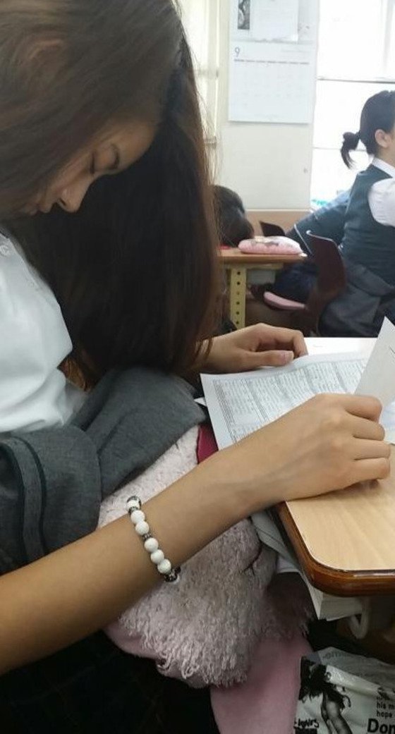 이와 함께 사진도 공개했는데요. 나영은 언제 어디서든 잠을 자고 있었습니다. 졸음 방지 책상에 서 있을 때도 나영은 꾸벅꾸벅 조고 있었죠.