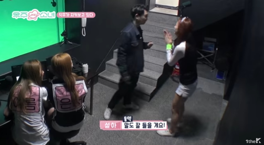 자의 반 타의 반으로 멤버들은 옷을 갈아입었습니다. 이때 설아는 옷을 갈아입고 뛰쳐나와 매니저에게 달려갔습니다. 무릎을 꿇고 "한 번만 살려달라. 말 잘 듣겠다"고 빌었죠.