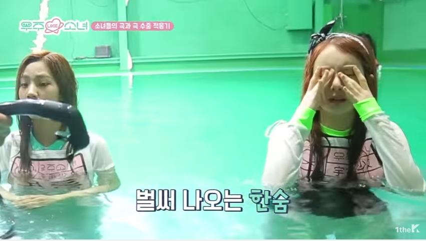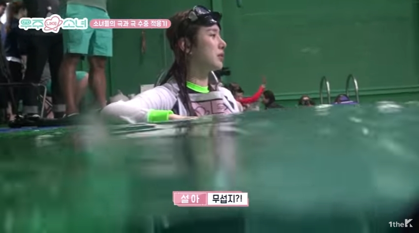 이날 코치는 물에 입수하기 전 멤버들의 실력을 대충 체크했는데요. 설아는 손을 들고 "전 물이 너무 무섭다"고 고백했습니다. 하지만 코치는 "괜찮다"고 단호하게 말했습니다.
