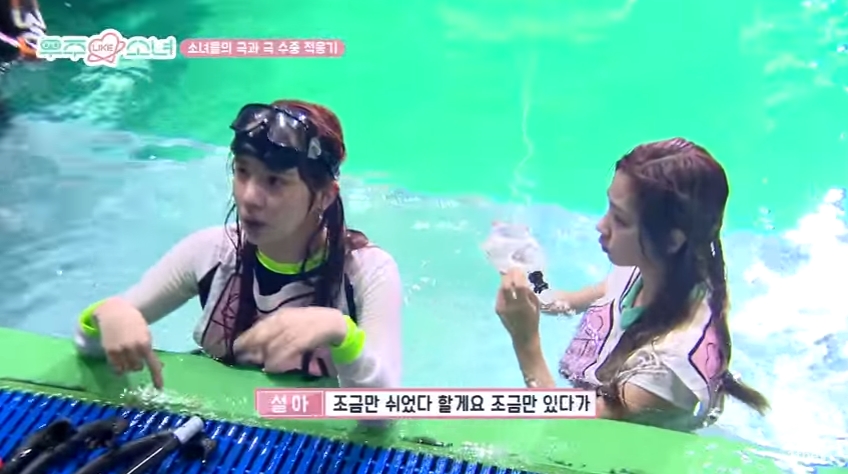 본격 훈련이 시작됐습니다. 처음에는 1~2m 깊이의 수조에서 수중 적응 훈련을 했는데요. 설아를 제외한 멤버들은 모두 능숙하게 물에 적응했습니다.