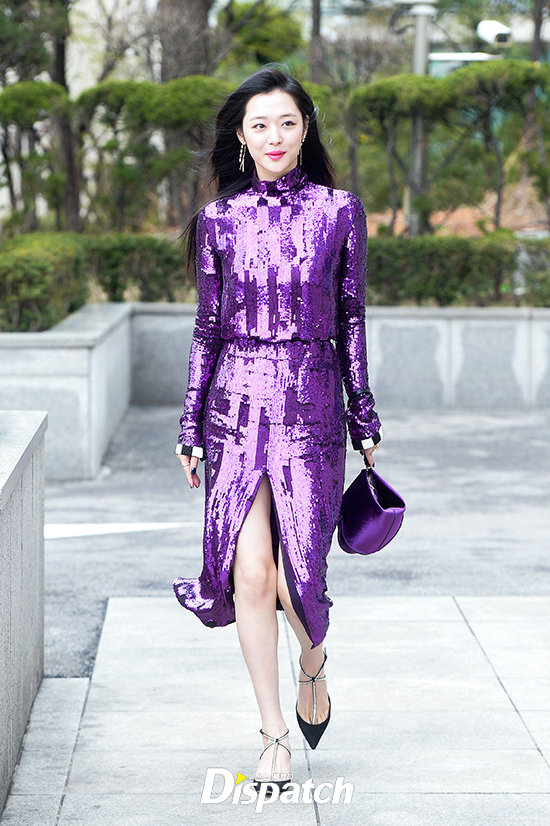 그러다 설리가 공식 석상에 서면요? 화사한 메이크업에 세팅된 헤어, 화려한 의상을 소화합니다. 미모 200% 풀충전하는데요.