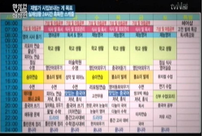 이에 따르면, 어린 딸이 소화하는 스케쥴은 충격적이었습니다. 오전 6시에 일어나 식사 및 영어 공부를 해야 했고요.