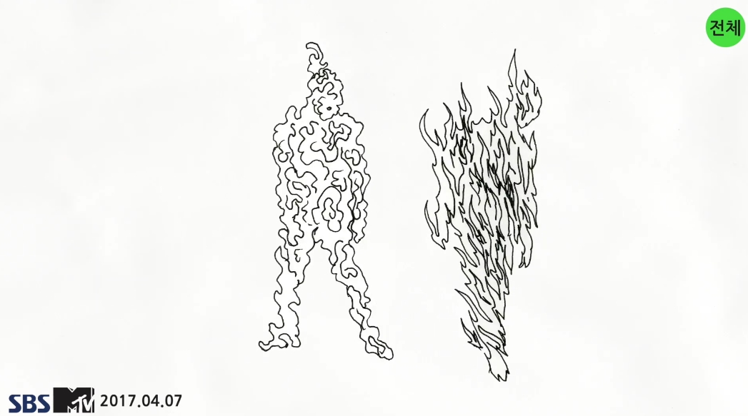 분위기는 묘했다. 검은색 심플한 드로잉으로 그려진 애니메이션이 펼쳐졌다. 춤을 추는 사람들, 우거진 숲과 산, 지저귀는 새 등이 나타났다.