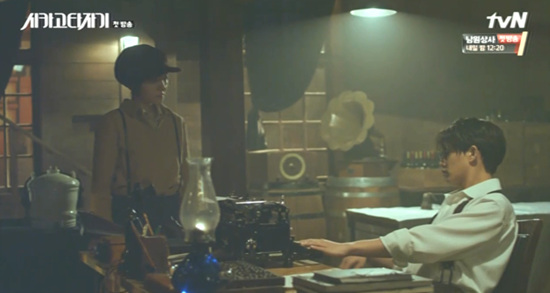 복선2. 수현은 휘영에게 의미심장한 충고를 건넨다. "펜은 칼보다 강하고, 타자기는 총보다 강하다. 좋은 글 쓰시라고요. 위대한 글." (1939년)