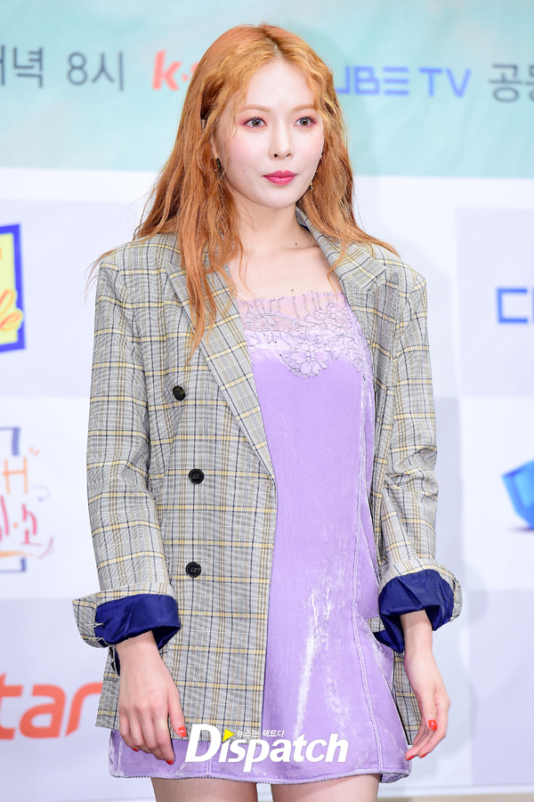 현아는 지난 19일 진행된 K STAR '트리플H 흥신소' 제작발표회에 참석했는데요. 아찔한 란제리룩을 선보였습니다.