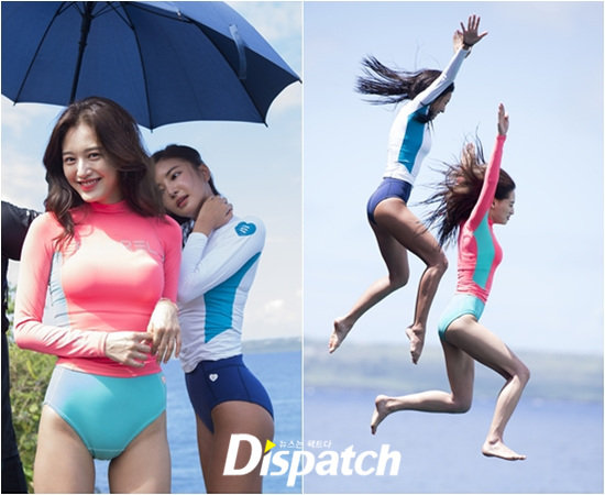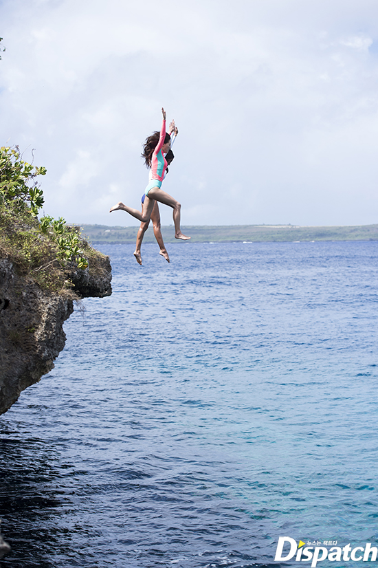 [Dispatch | 사이판=이승훈기자] '레인보우' 출신 김재경과 가수 NS윤지가 절벽 프리 다이빙을 선보였다.