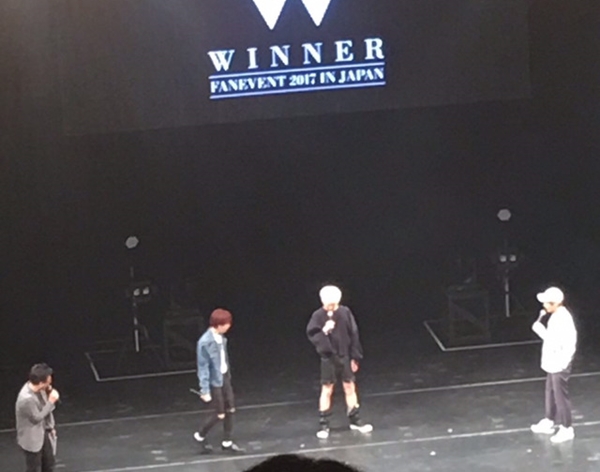 지난 4일 열린 '위너'의 팬미팅 현장이었습니다. 강승윤은 남색 니트와 검정색 청바지를 입었습니다.