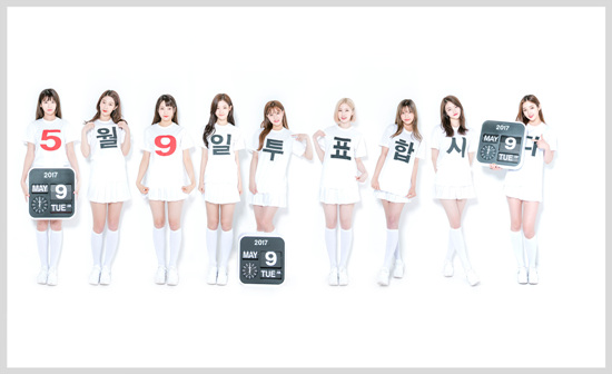 'MBK엔터테인먼트'는 9일 대선날을 맞이해 다이아의 포스터를 공개했다. 멤버들은 레터링 티셔츠를 입었다. 각각의 글씨가 모여 "5월 9일 투표합시다"는 문구를 완성했다.