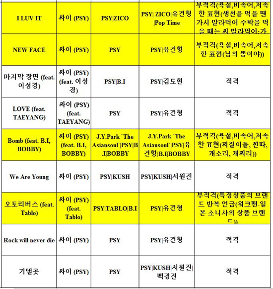 [Dispatch=김지호기자] 가수 싸이의 신곡이 KBS 가요심의를 통과하지 못했다. 타이틀 곡 2곡을 포함해 총 4곡이 심의 부적격 판정을 받았다.