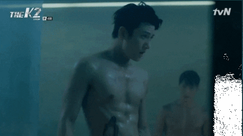 지창욱은 앞서 tvN '더 케이투'에서도 남다른 몸매를 과시한 바 있는데요. 그의 레전드 몸매, 움짤로 보시죠.