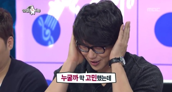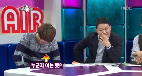 이를 듣던 규현은 웃음이 터졌습니다. 누구인지 아는듯한 모습이었는데요. 고개를 숙인 채 부끄러워했습니다.