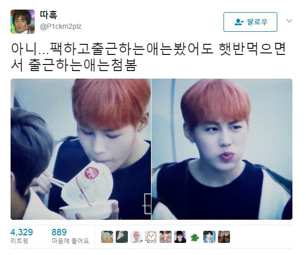 [짤줍] 엠넷 '프로듀스 101 시즌2'(이하 '프듀2') 하성운 연습생이 엉뚱한 매력을 뽐냈습니다. 즉석밥을 먹으며 출근했는데요.