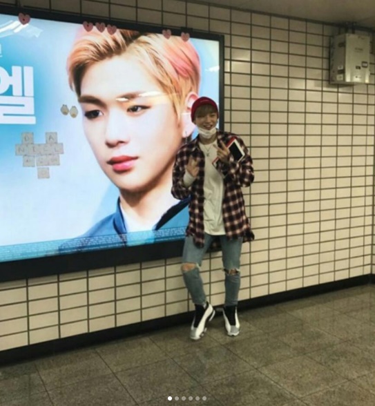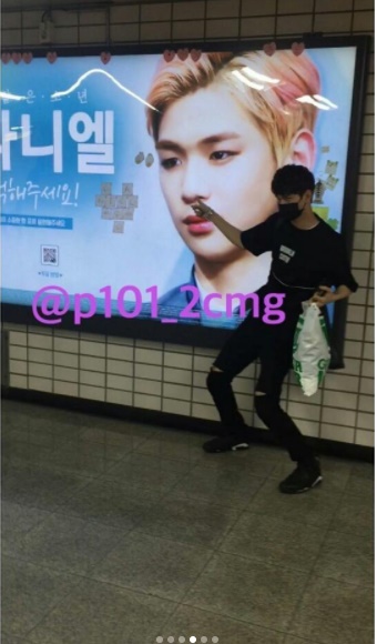 Mnet '프로듀스 101 2' 연습생 강다니엘(MMO)과 옹성우(판타지오)가 팬사랑을 드러냈습니다. 지하철 광고판 앞에서 인증 사진을 찍었는데요.