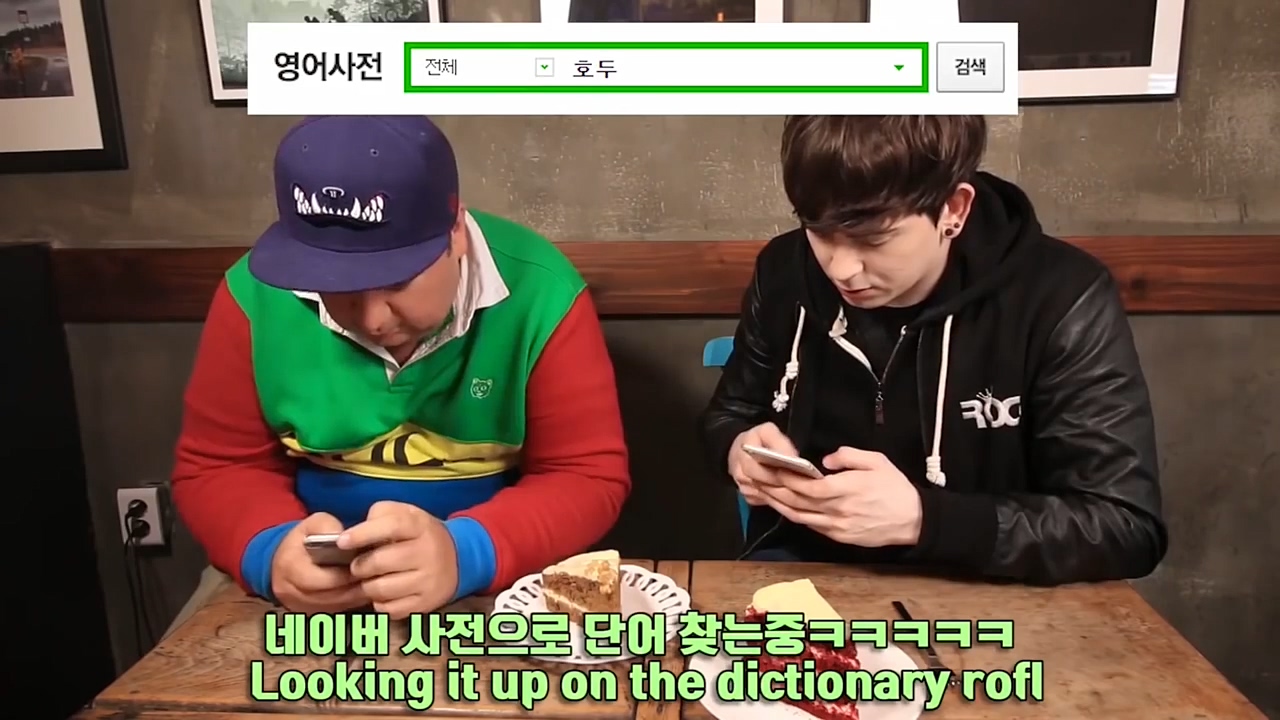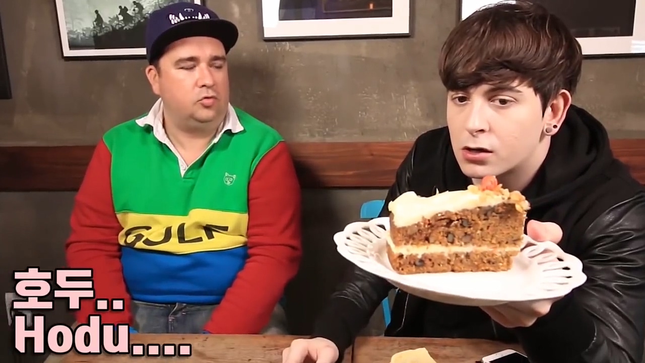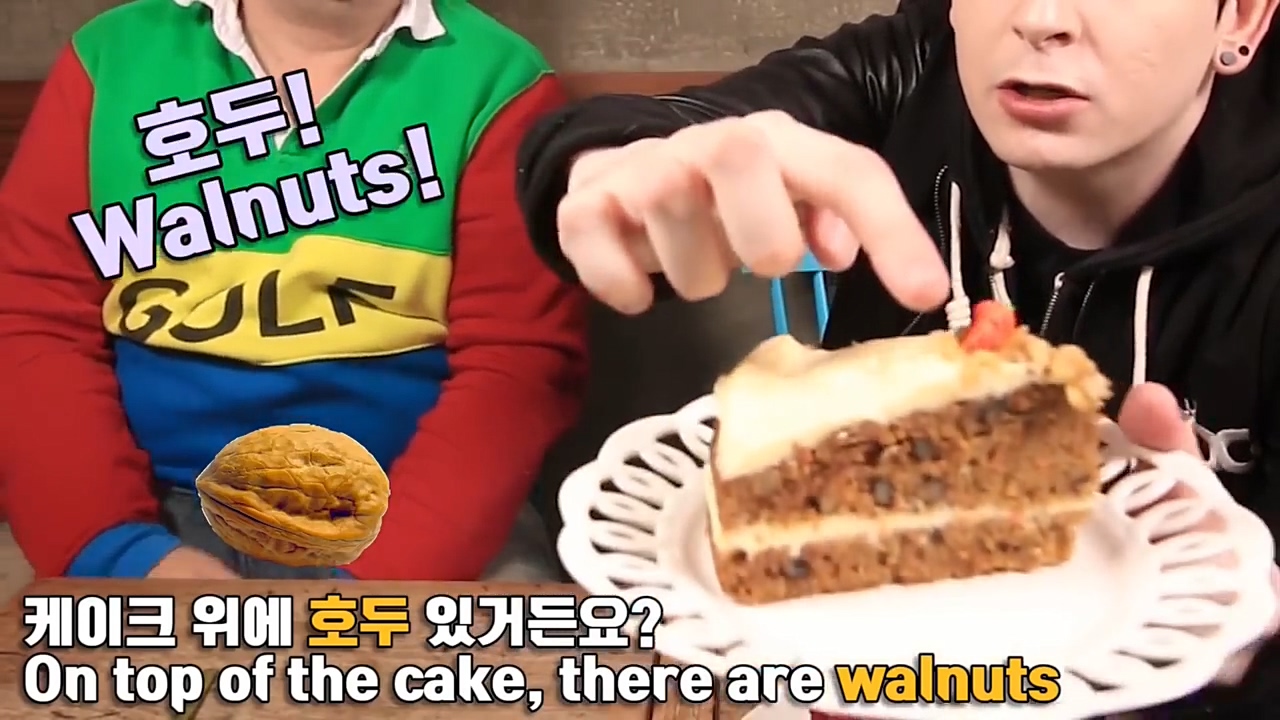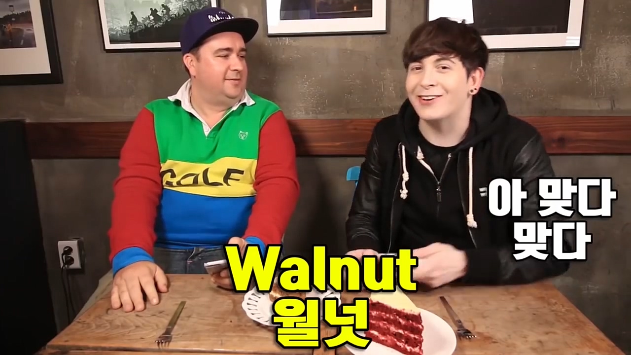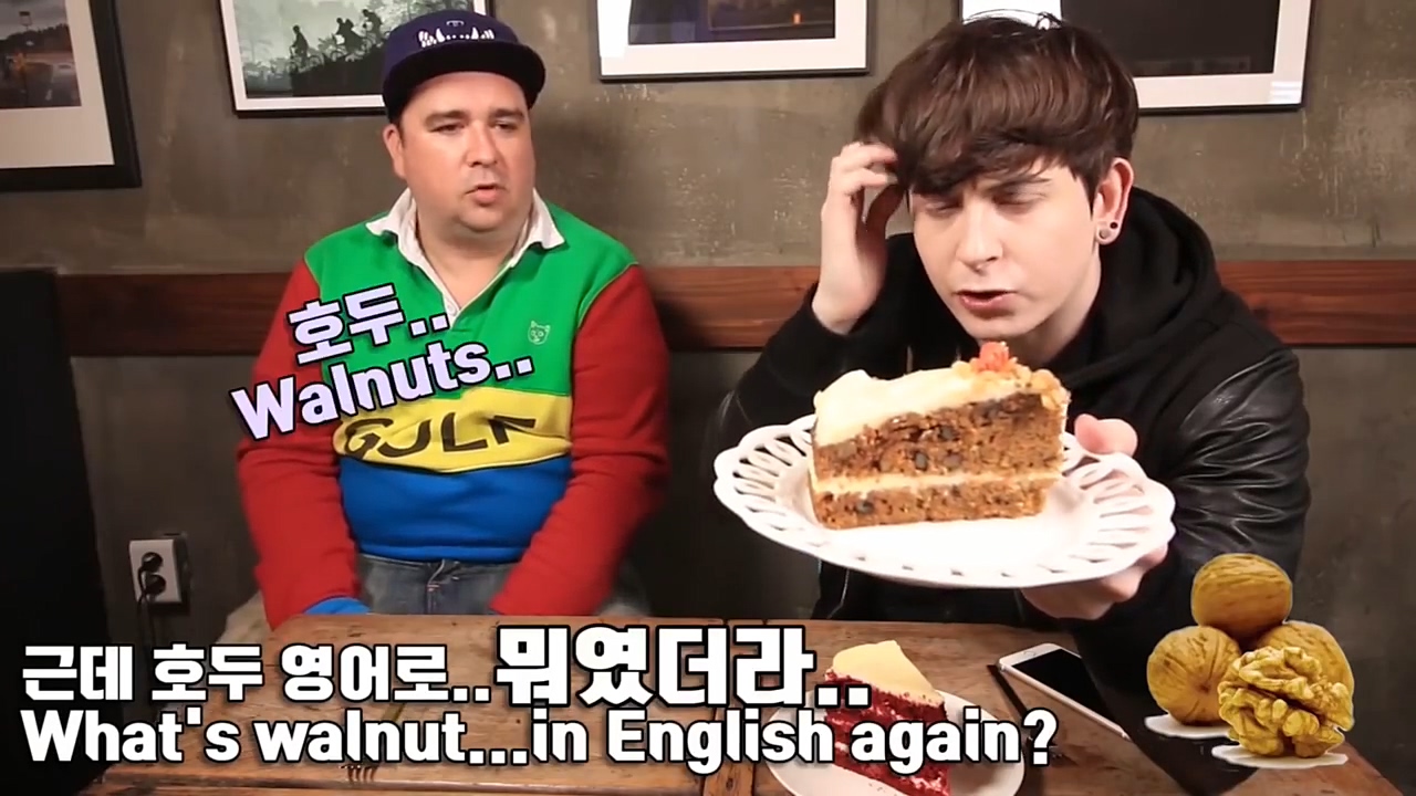 데이브는 영어를 몰라 인터넷에 검색하기도 합니다. 자신의 유튜브 채널에서 샘 해밍턴과 호두 케이크를 리뷰하는 영상을 올렸는데요.