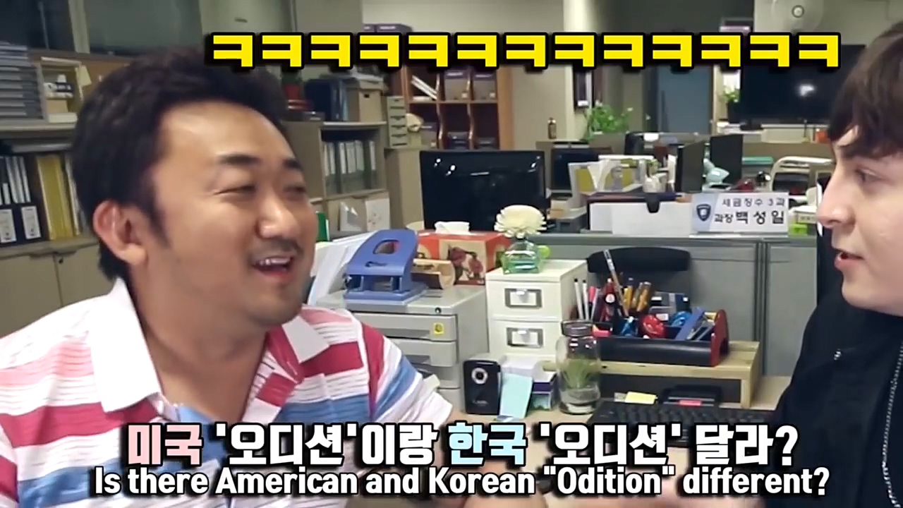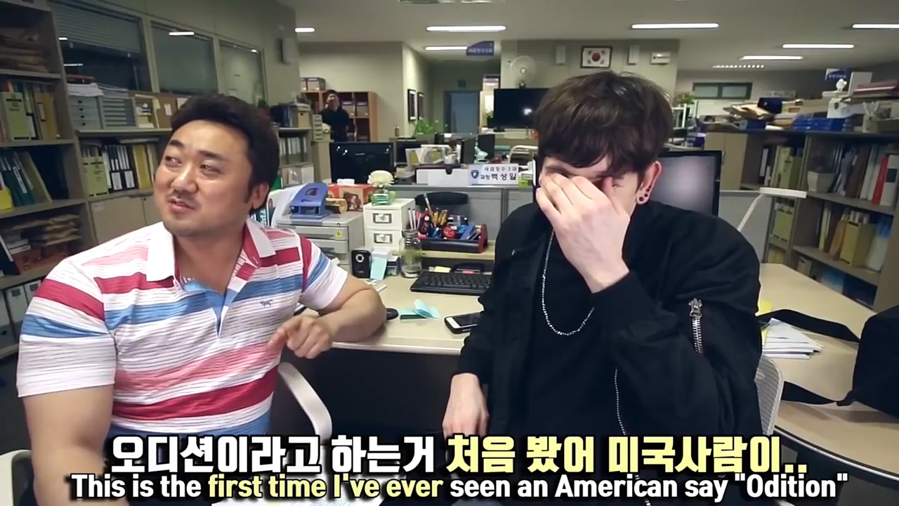 또 '오디션'(Audition)을 발음할 때도 "아디션"이라는 미국식 발음을 쓰지 않고 "오디션"이라고 정직하게 발음했는데요. 마동석은 "미국 사람이 오디션이라고 발음하는 건 처음 본다"며 웃음을 참지 못했습니다.