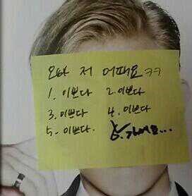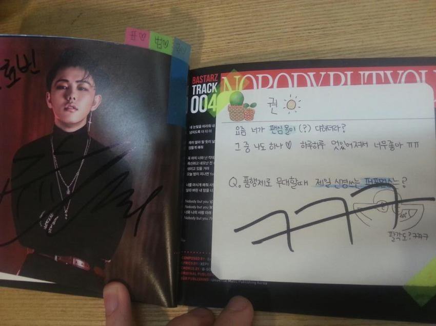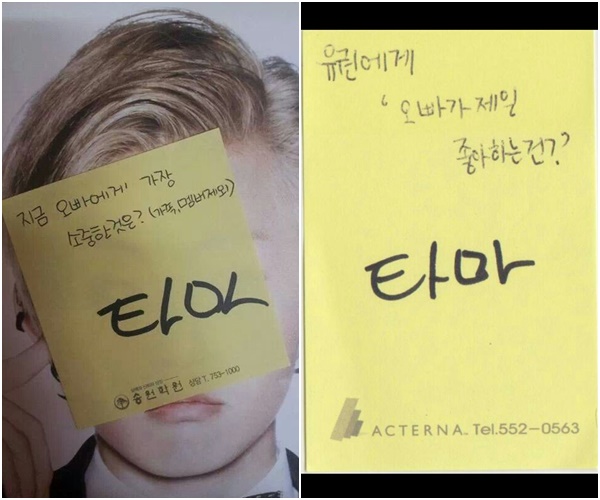 일부 팬들은 접착식 메모지를 통해 그에게 질문했습니다. 그리곤 유권으로부터 다양한 답을 들을 수 있었는데요.