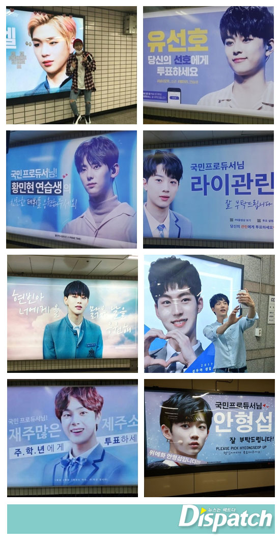 광고를 내거는 장소는 주로 지하철역 전광판이다. 사람들이 많이 지나다니는 역마다 연습생의 사진과 응원 문구를 붙였다. 포스트잇 게시판 등도 설치했다.