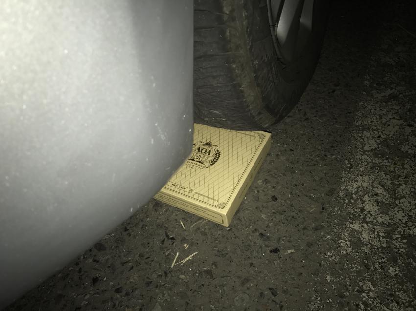 팬은 자동차 바퀴 밑 앨범을 놨습니다. 이후 이 위를 지나갔는데요. 앨범은 바닥에 쓸리고 눌려 망가지고 말았습니다.
