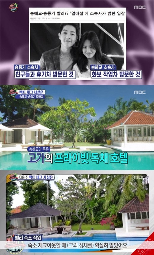 풀빌라 관계자가 불만을 터트린 곳은 MBC '섹션TV 연예통신'이다. 관계자는 "이 사진은 허가 없이 몰래 찍은 것(That picture were taken without my permission)"이라 덧붙였다.