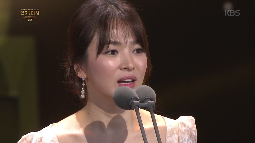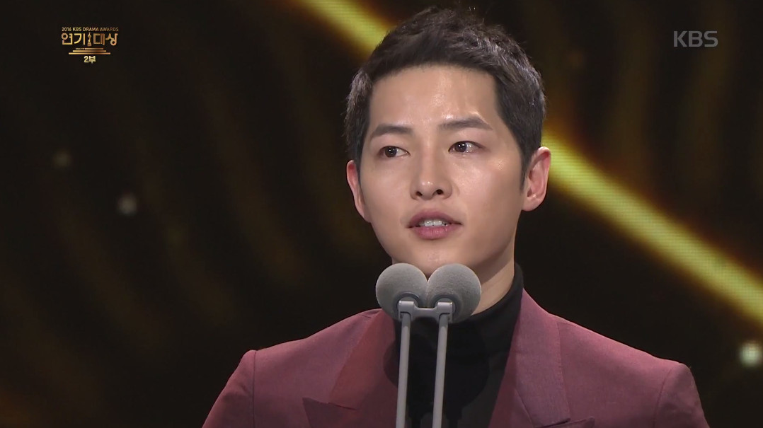 이어 송중기는 "저에겐 대 선배이기도 하고, 너무나 아름답고 사랑스러운 파트너이기도 하다. 우리 혜교 누나에게 이 모든 영광을 돌린다"며 말을 마쳤습니다.