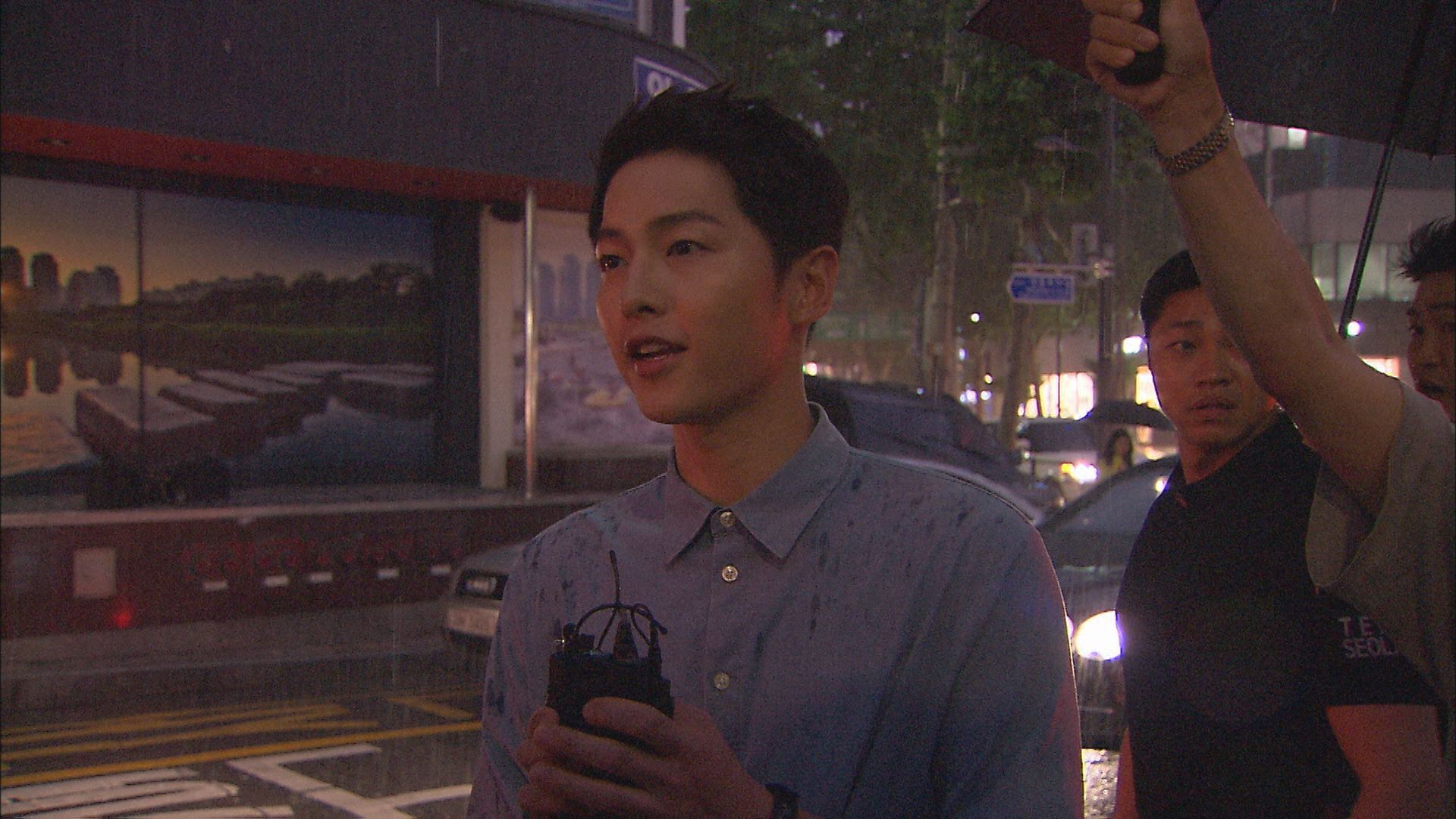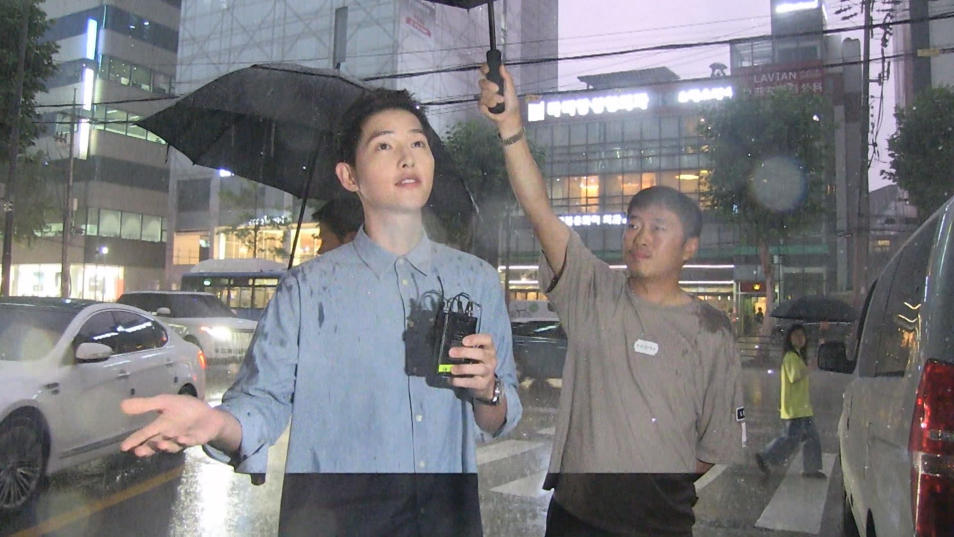 이날 송중기는 사랑꾼 면모도 드러냈습니다. "송혜교가 오늘 긴장하지 말고 잘 하고 오라고 말했다"며 미소를 지어보였고요.